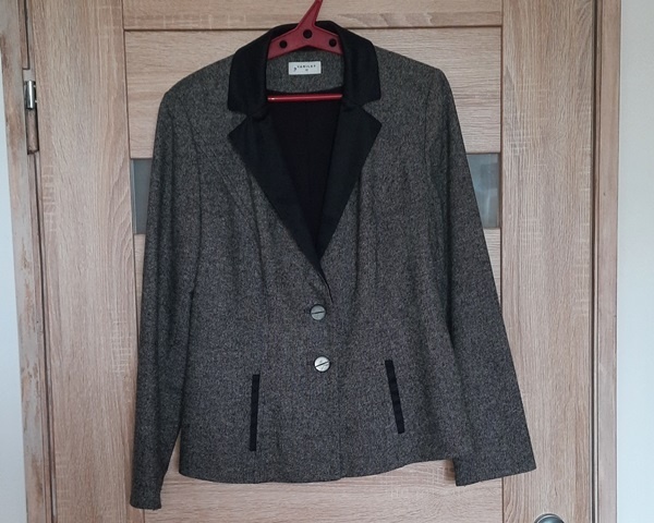 Marynarka-żakiet damska, rozm. 40, szara, czarne klapy