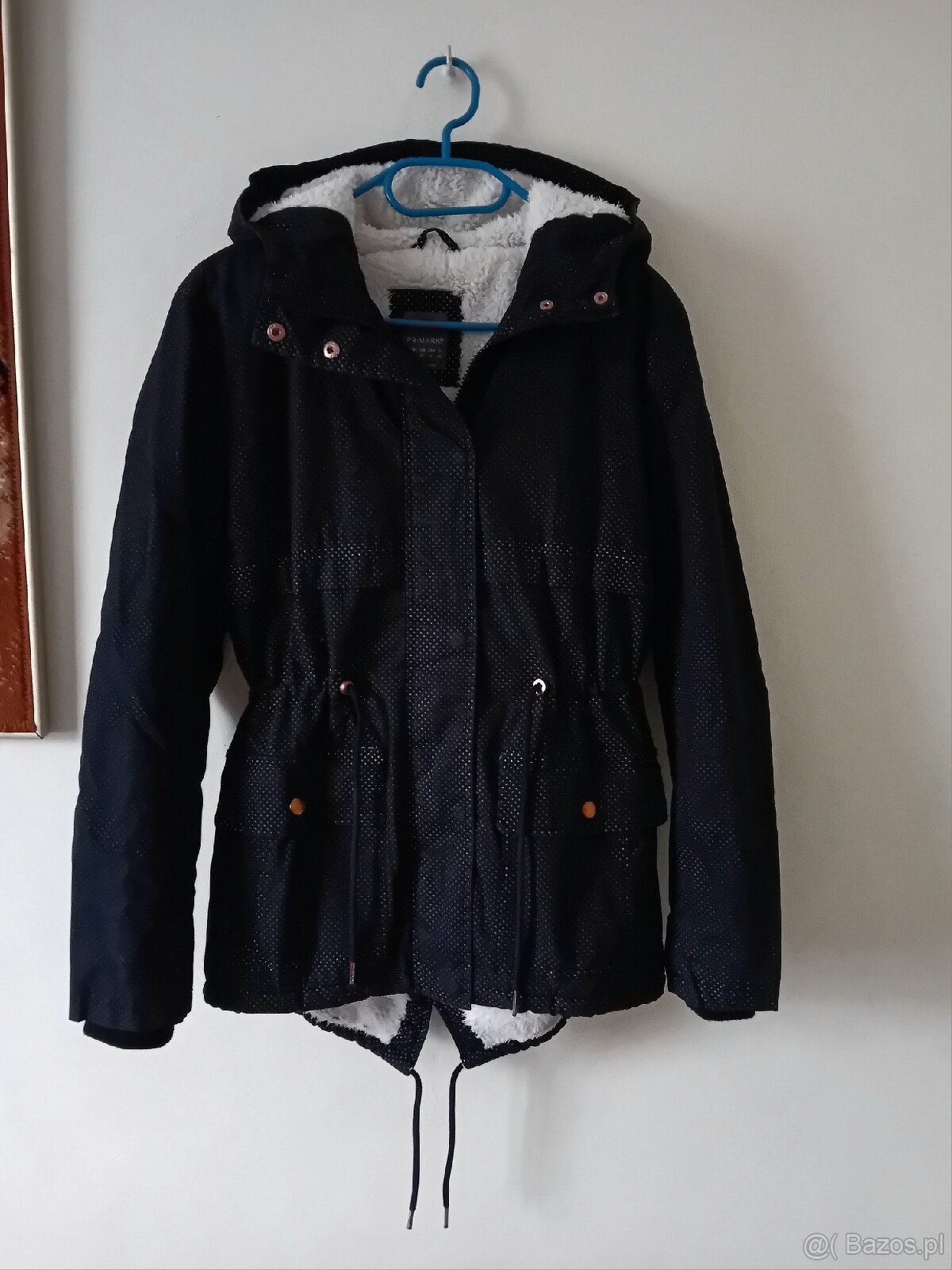 Kurtka zimowa parka w kolorze granatowym w Białe drobne kropeczki. Ciepła, stylowa. Doskonała na zimę.