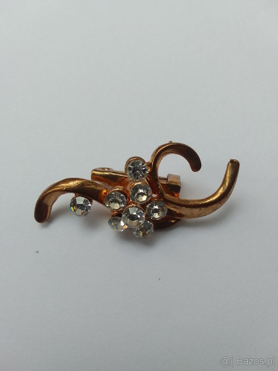 Metalowa broszka vintage z cyrkoniami