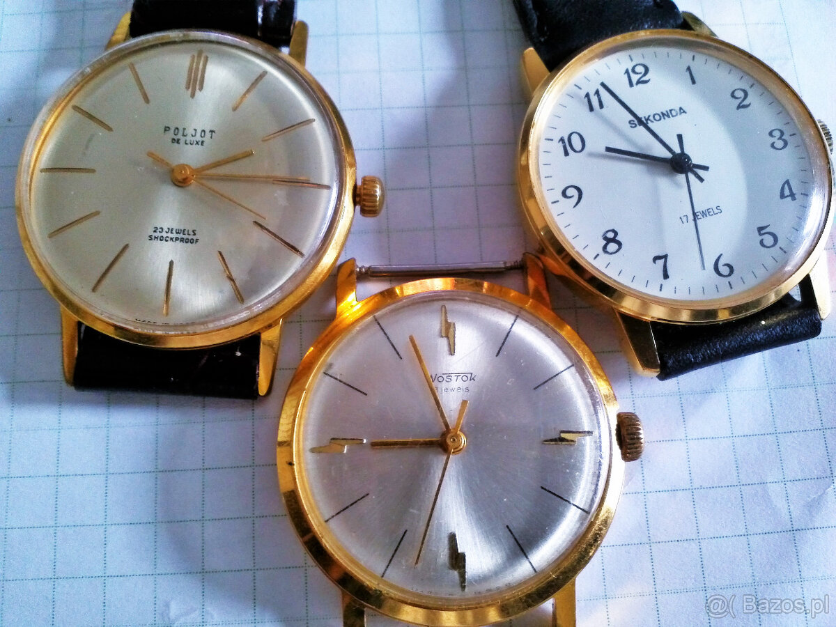 Witam sprzedam kilka zegarków naręcznych marki Poliot,Sekunda, wostok ,zegarkisa złocone 18K złotem 12au, zegarki są jak nowe,cena dotyczy jednej sztuki .Polecam
