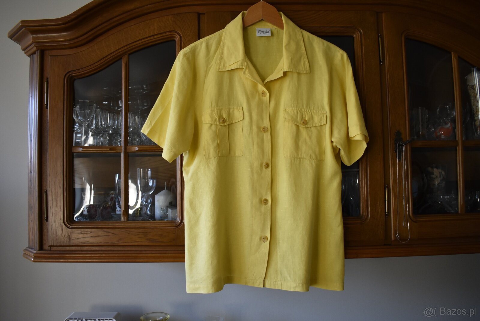 Bluzka koszulowa z któtkimi rekawami, 100% len, rozmiar 40. Szerokość ramiona 43, pod pachami 52, długość 64 cm. Używana, stan bardzo dobry. Odbiór osobisty w Warszawie. Możliwa wysyłka na koszt kupującego. Osoby zainteresowane proszę o kontakt telefoniczny.