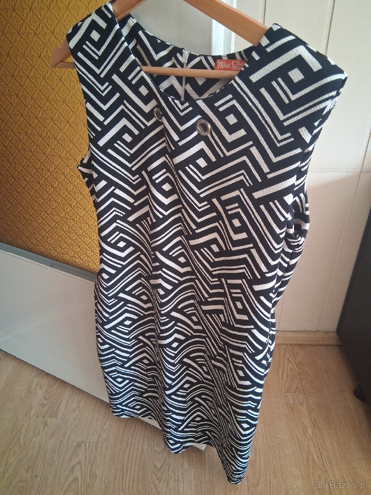Sukienka turecka, oryginalny wzór, 2 falbany, M - jak nowa - [29.1. 2026]Sprzedam: urocza sukienka, z fantazyjnym dekoltem z kokardą, bardzo miła w dotyku, lekko rozciągliwa, rozmiar EU 36-38, zakończona dwiema falbanami, atrakcyjny wzór, przewiewna. Przybliżone wymiary: długość 97 cm, obwód biustu 88 cm, krótki rękaw (długość z mankietem 29 cm). Stan bardzo dobry (zdję ...