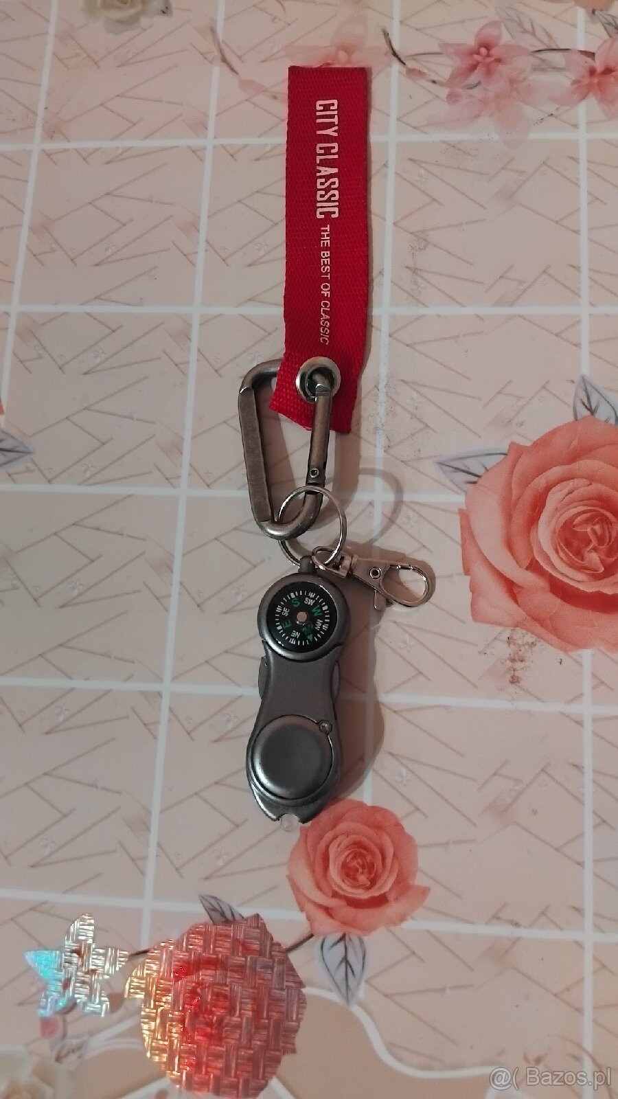 Breloczek posiada wyjmowany kompas i mini latarke