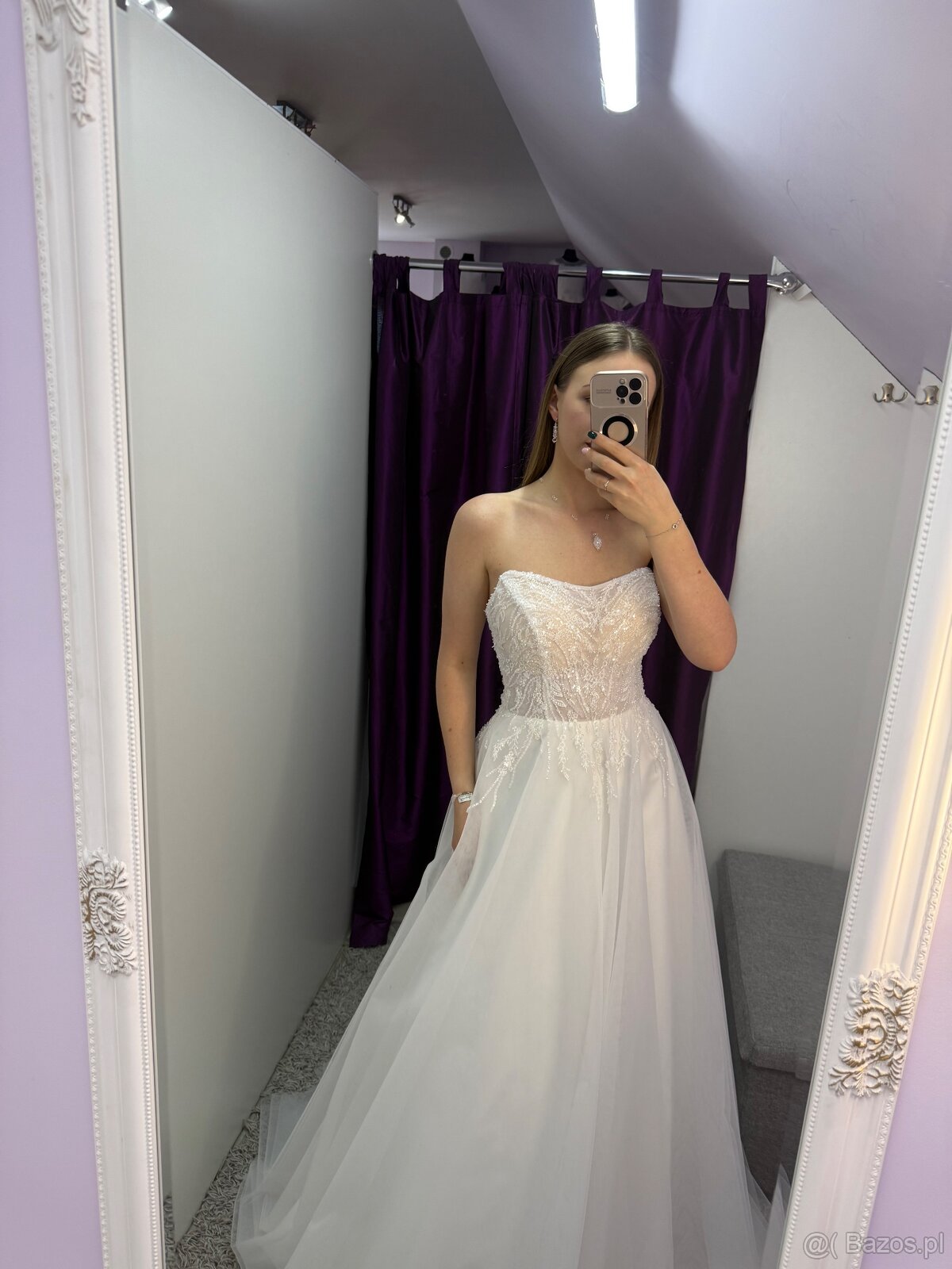 Sprzedam suknię ślubną rozmiar 42 - [8.3. 2026]Sprzedam piękną nową suknię ślubną w kolorze białym, rozmiar 42 . Posiada piękny gorset zdobiony haftem oraz tiulową spódnicę z rozcięciem na nodze . Suknię można dopasować do rozmiaru i długości.Zapraszam do zakupu