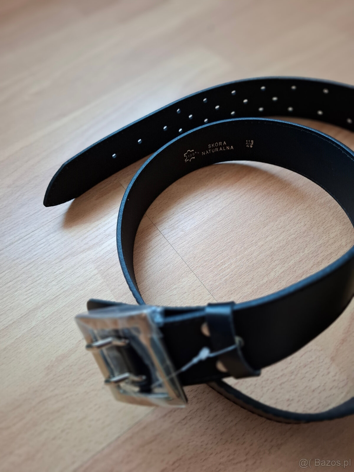 Pas skórzany, czarny, nowy, całkowita długość pasa 140cm, szerokość 4,4cm. Możliwość wysyłki pocztą za pobraniem