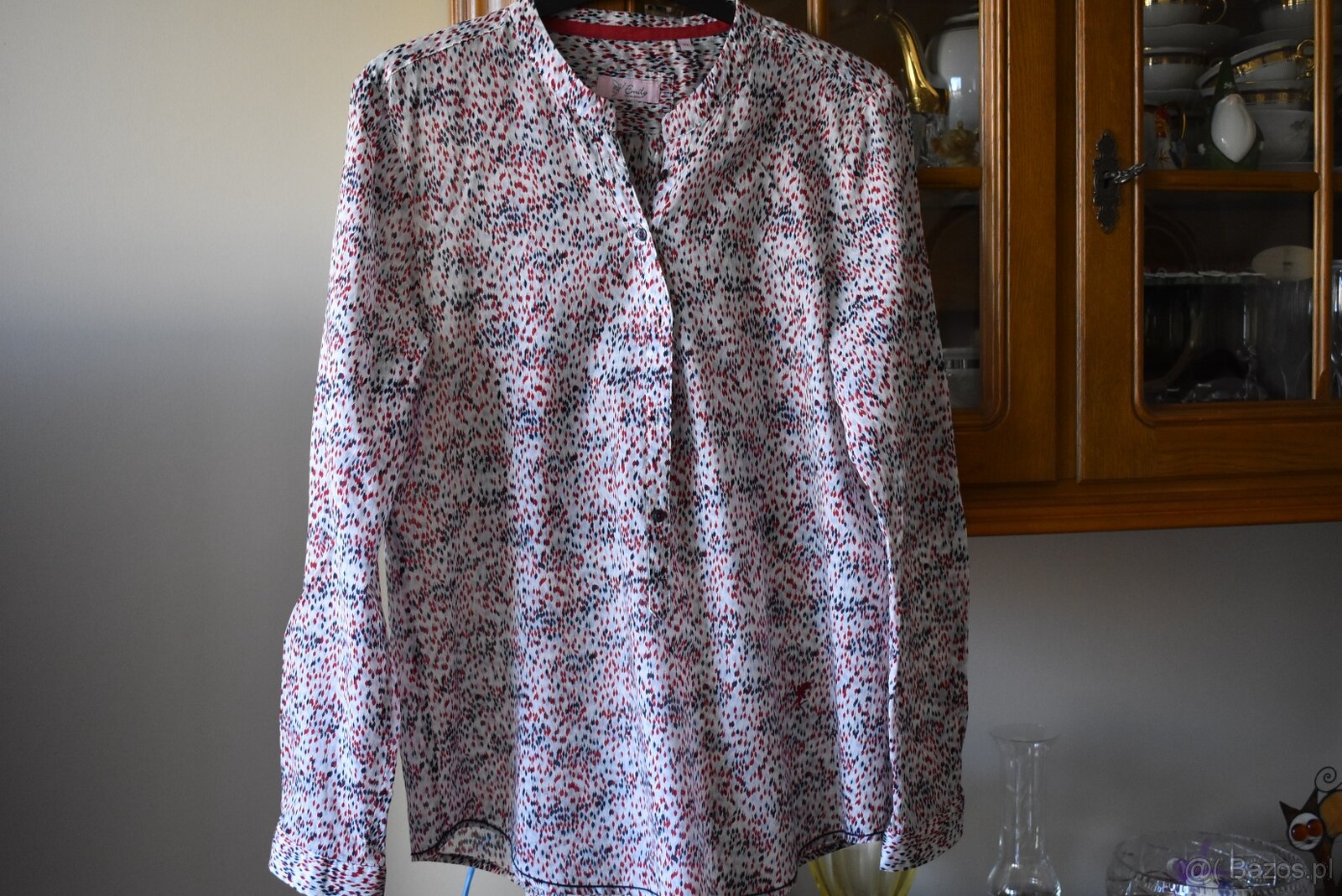 Bluzka koszulowa - [1.3. 2026]Bluzka z krótkimi rekawami, wzór kwiatowy, 100% bawełna, rozmiar 38. Szerokość ramiona 45,pod pachami 54, talia 45, biodra 50, długość 54 cm. Stan bardzo dobry. Odbiór osobisty w Warszawie. Możliwa wysyłka na koszt kupującego. Osoby zainteresowane proszę o kontakt telefoniczny.