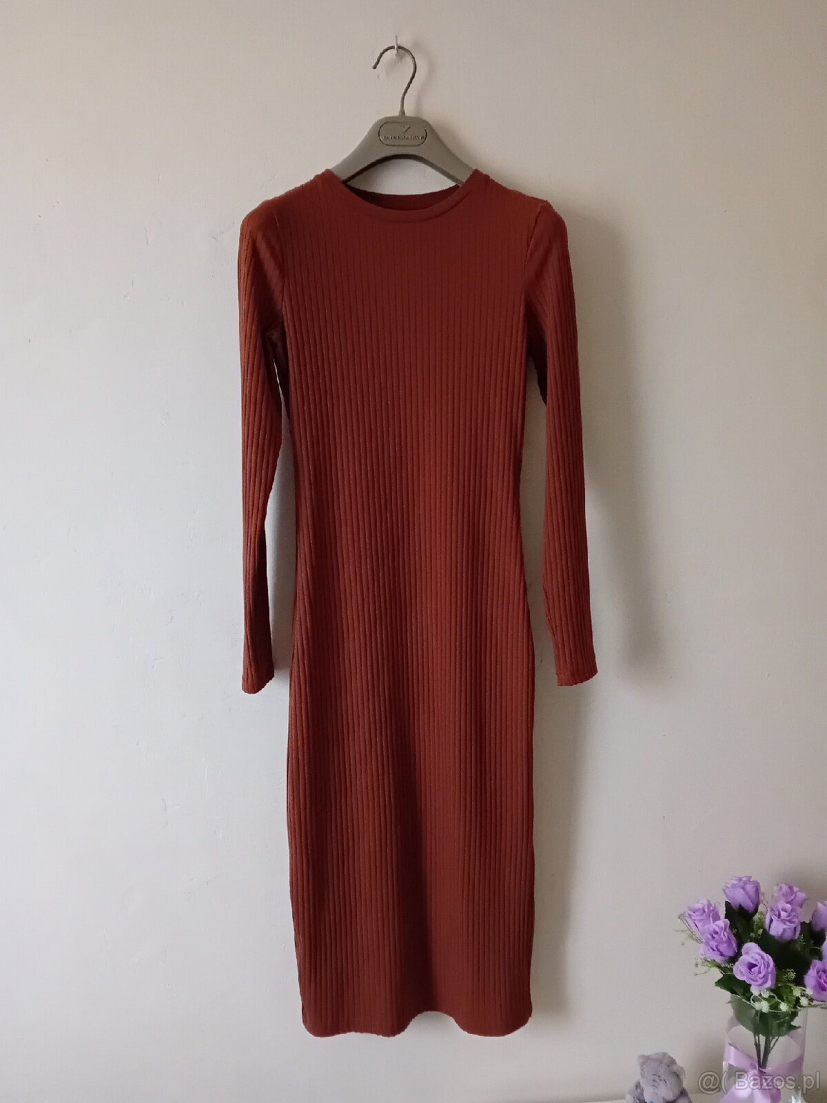 Sukienka midi z rozcięciem na boku. Ładny kolor i idealna na co dzień. Doskonała propozycja dla tych, którzy lubią prostotę i wygodę.