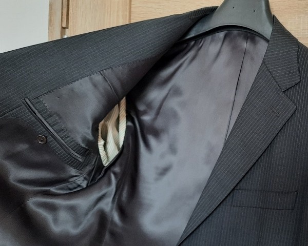 Marynarka, wełna, granat/czerń, na 182 cm - jak nowa - [1.4. 2026]Sprzedam: elegancka MARYNARKA firmy Malibu, użyta raz - stan idealny – jak nowa.
