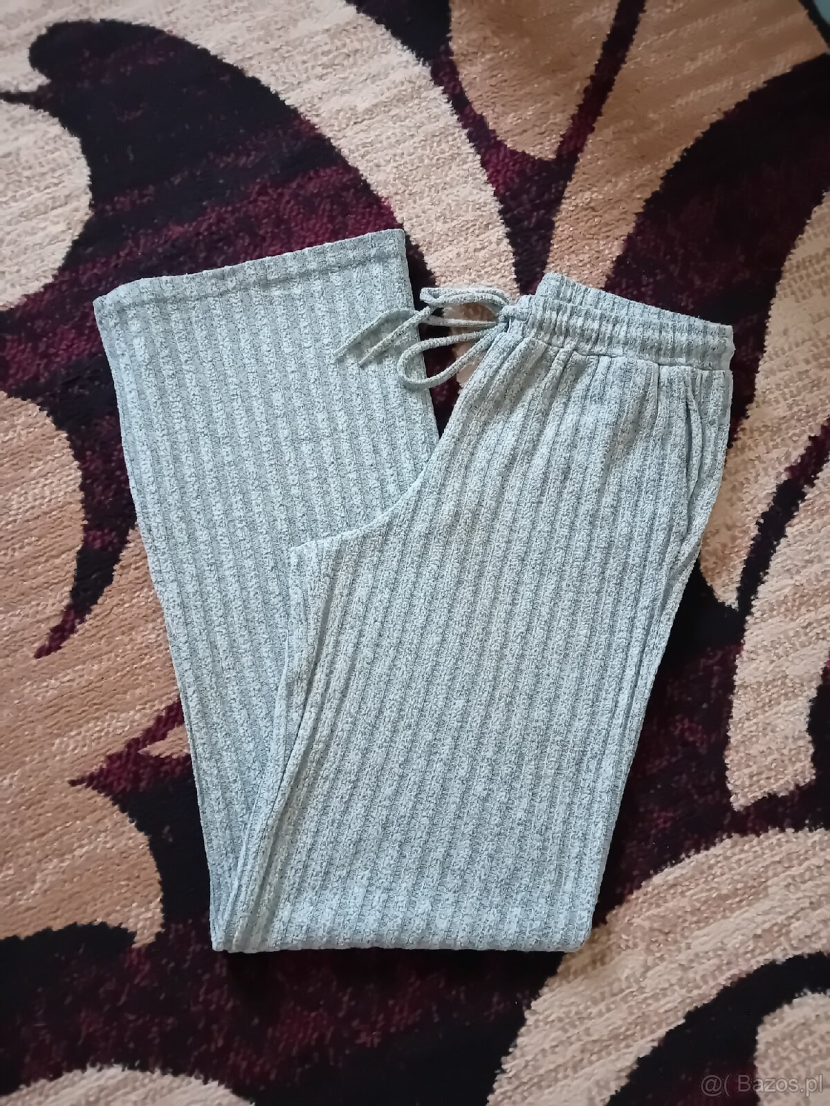 Spodnie prążkowane z szerokimi nogawkami, wykonane z bawełny. Kolor mietowy. Wygodne, ciepłe i elastyczne. Doskonałe na chłodniejsze dni. Rozm s.