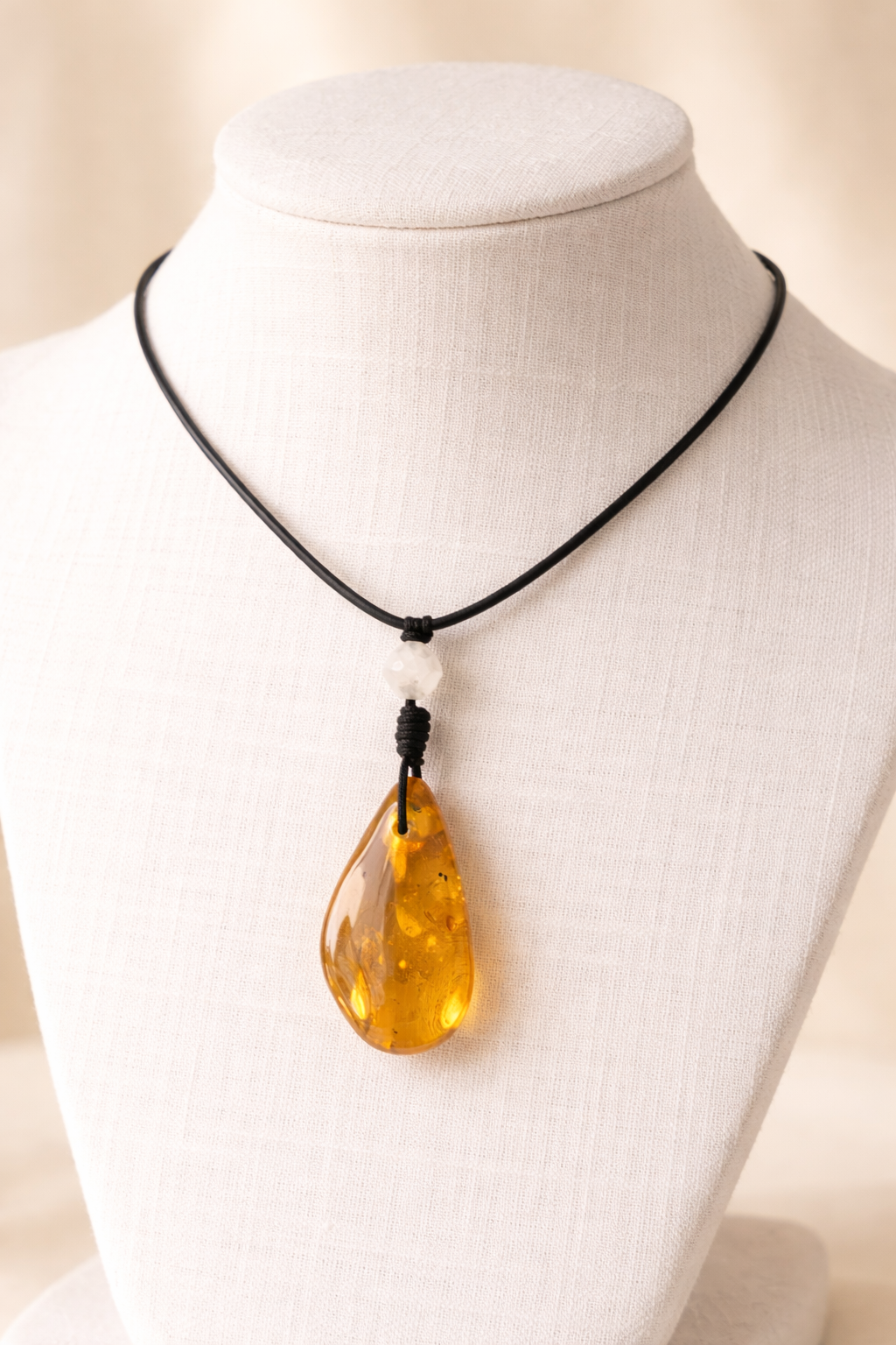 Dzień dobry, oferuję Własnoręcznie wykonany wisiorek z naturalnego bursztynu.